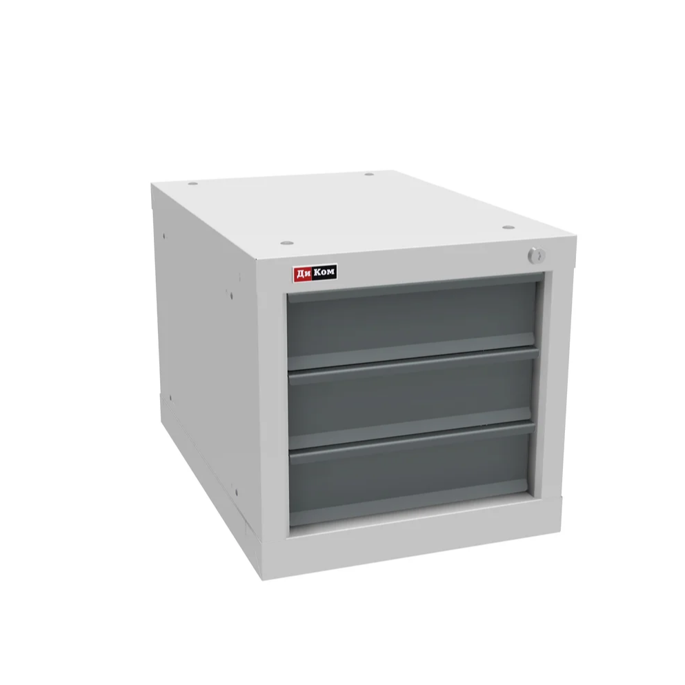 В комплектацию тубы входят 3 выдвижных ящика, центральный ключевой замок. Для крепления тумбы к столу необходима СР-М Рамка