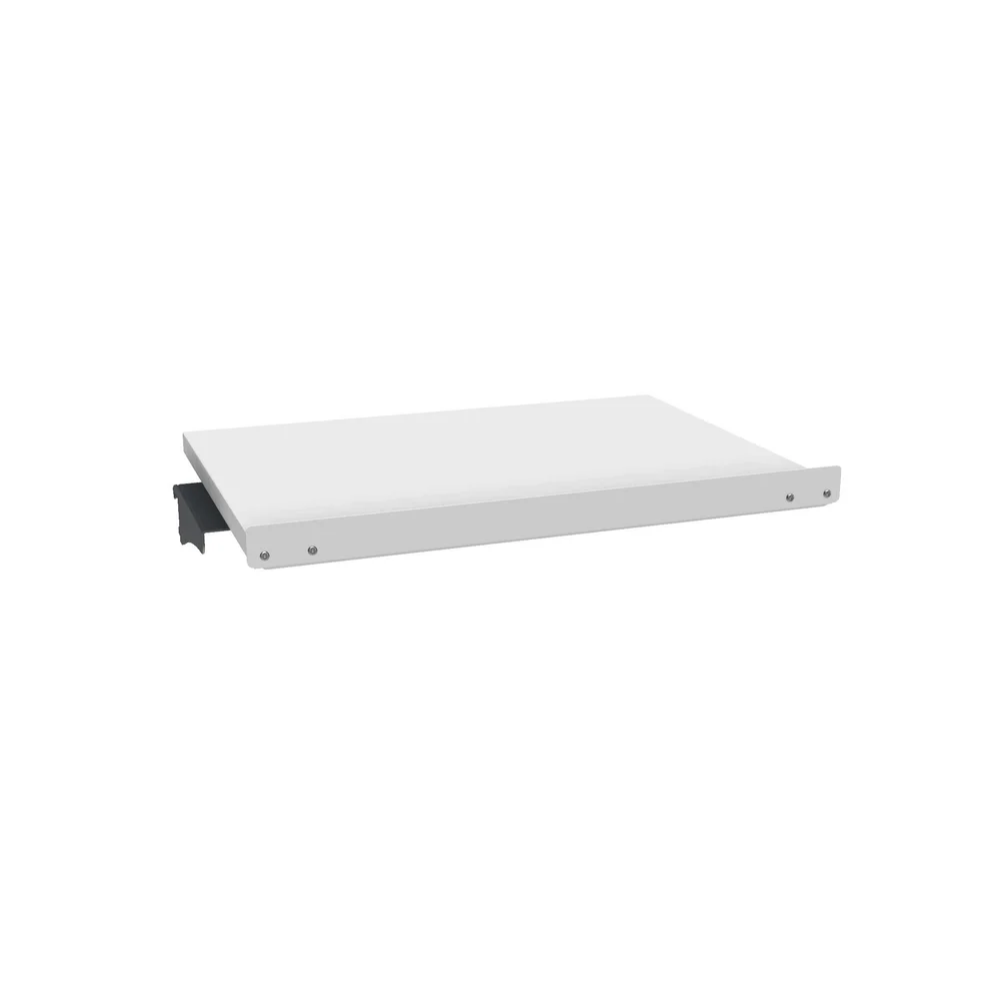 Устанавливается на стойки экрана, три варианта установки: прямо и под наклоном 15 и 30 градусов. Глубина 500 мм. Передний упор в комплекте. Максимальная нагрузка — 80 кг. Покрытие – порошковая ESD краска TEKNOS (Финляндия).