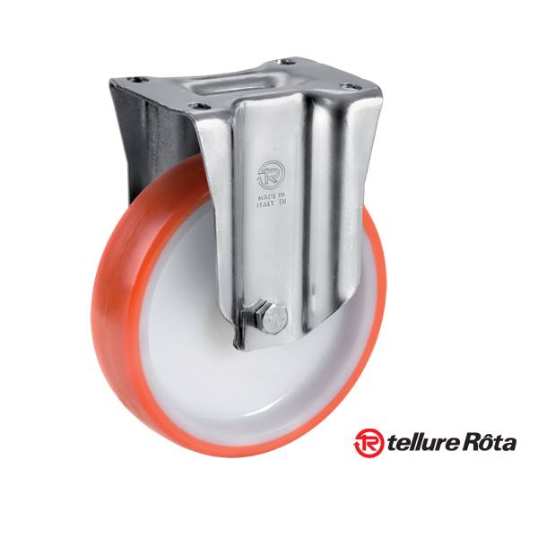 Этот тип колеса идеально подходит для внутреннего передвижения, для частой мойки и стерилизации. Рекомендованные примеры применения: тележки с трубчатой конструкцией, тележки для пищевой промышленности, передвижные строительные леса согласно стандарта UNI EN 1004:2005.