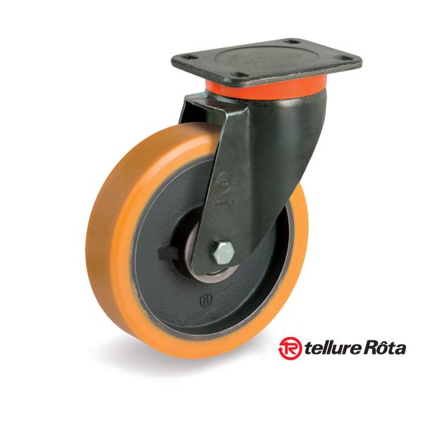 Колесо Tellure Rota 647856 поворотное (d=200мм, г/п=1000кг), полиуретан/чугун, Италия