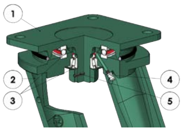 - 3. Поворотный механизм: осевой шариковый подшипник и конический роликовый подшипник