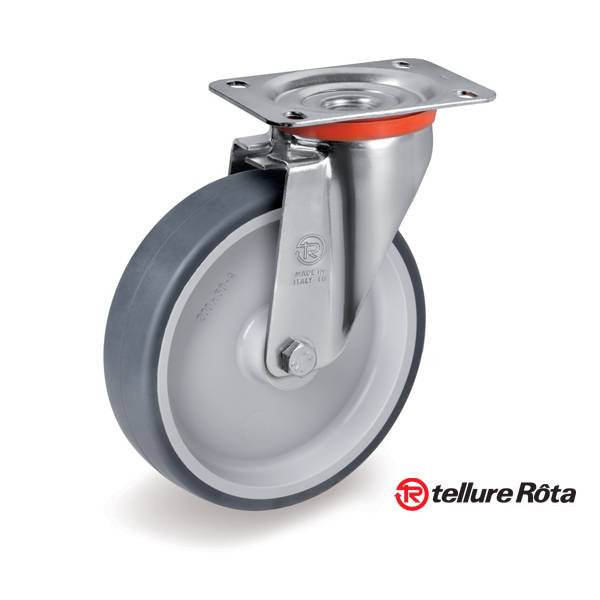 Колесо Tellure Rota 714202 поворотное (d=100мм, г/п=100кг), серая резина / полипропилен, Италия