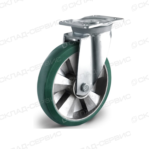 Колесо CASCOO поворотное, (d=160мм, г/п=600кг) зеленый полиуретан/алюминий, Германия