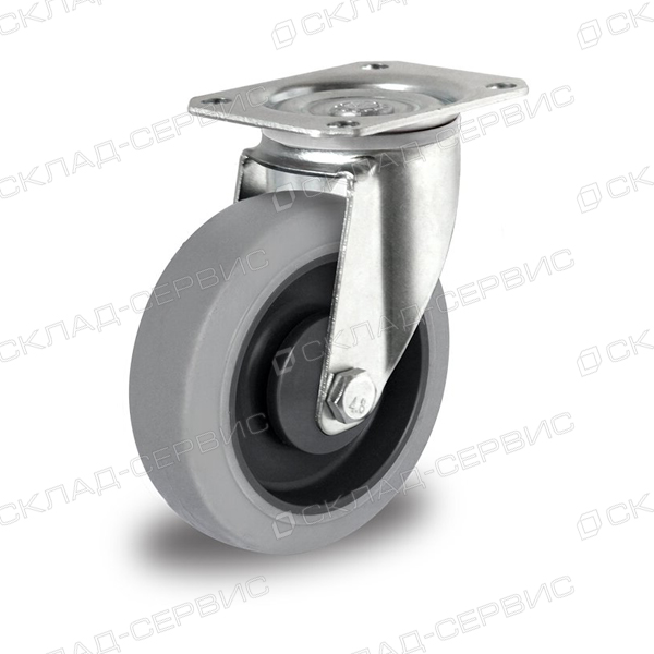 КОЛЕСО: Эластичная серая резина, не оставляющая следов, твердость по Шору 65А. Превосходные характеристики по сопротивлению качению и эластичности.
