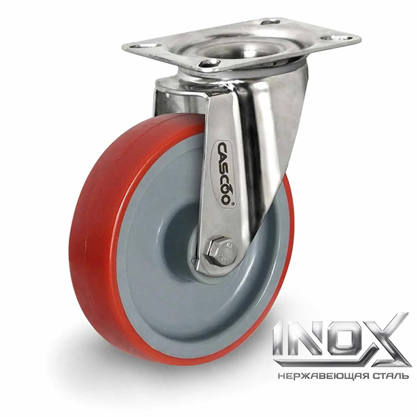 Колесо CASCOO поворотное из нержавейки (d=160мм, г/п=300кг), полиуретан / полиамид, Германия