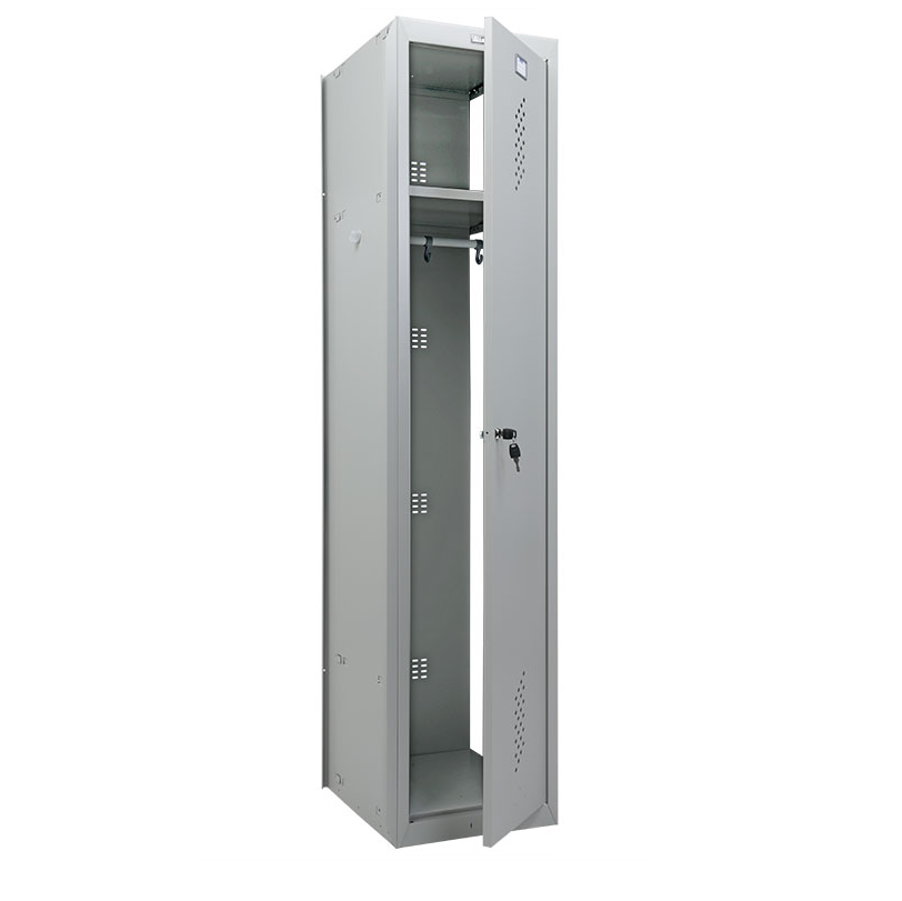 Шкаф имеет полку для головных уборов и перекладину для плечиков, что делает его удобным для хранения как рабочей, так и личной одежды. Вдобавок предусмотрены пластиковые крючки на дверце, которые обеспечат дополнительное место для мелких вещей. Для обеспечения безопасности и порядка, шкаф закрывается на ключевой замок с 2000 комбинациями.