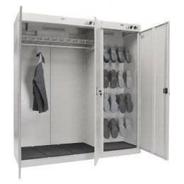 Емкость и вместимость: шкаф оснащен двумя отдельными секциями, что позволяет сушить большое количество одежды одновременно (до 8 комплектов), обеспечивая рациональное использование пространства;