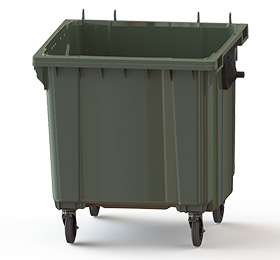 Вы можете заказать на sklad-21.ru мусорные зелёные пластиковые контейнеры объемом 1100 литров с доставкой по РФ.