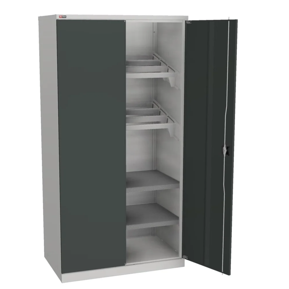 Поверхность шкафов окрашена порошковой эпоксидной краской TEKNOS (Финляндия), устойчивой к механическим воздействиям и агрессивным жидкостям: корпус — серый RAL 7038, дверцы — антрацитово-серые RAL 7016.