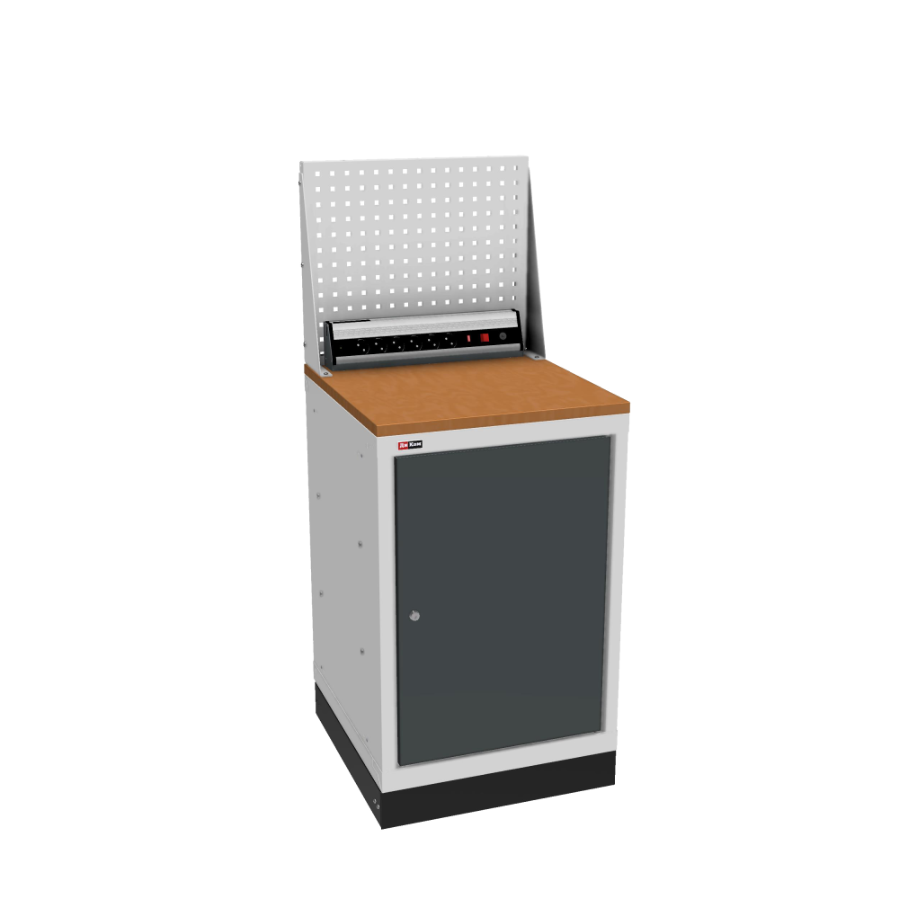 Инструментальная тумба ДиКом ВЛ-К-010 со столешницей, экраном, электропанелью на подставке с цоколем. Тумба с распашной дверцей, которая открывается на 120 градусов и двумя полками. Столешница из фанеры толщиной 24 мм, покрыта бесцветным лаком. Корпус тумбы полностью сварной, изготавливается с применением роботизированных сварочных комплексов. Тумба комплектуется ключевым замком EURO-LOCKS (Германия, 10000 комбинаций). При изготовлении применяется эпоксидная порошковая краска TEKNOS (Финляндия). Корпус окрашен в серый цвет RAL-7038, ящики - антрацитово-серый RAL 7016. На тумбу можно установить дополнительные элементы: комплект колес, ручку.