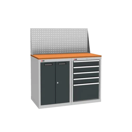 Максимальная нагрузка на тумбу-верстак — 3000 кг. Максимальная нагрузка на ящик — 100/200 кг (200 кг - при установке дополнительного комплекта направляющих), на полку — 200 кг. Полки в тумбу с дверцей приобретаются отдельно.