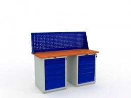 Дополнительно столярный верстак можно укомплектовать перфорированными экранами и аксессуарами для инструментов и диодным освещением. Ящики тумб возможно дополнить перегородками для удобного секционного хранения инструмента.
