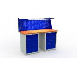 Дополнительно столярный верстак можно укомплектовать перфорированными экранами и аксессуарами для инструментов и диодным освещением. Ящики тумб возможно дополнить перегородками для удобного секционного хранения инструмента.
