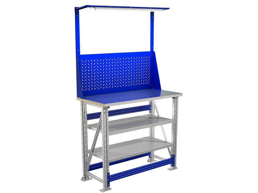 Так же верстак оборудован одинарным экраном с перфорацией, шаг перфорации составляет 38 мм. На экран можно повесить различные аксессуары: полки, держатели инструмента и т. д.