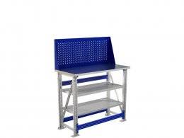 Так же верстак оборудован одинарным экраном с перфорацией, шаг перфорации составляет 38 мм. На экран можно повесить различные аксессуары: полки, держатели инструмента и т. д.
