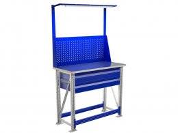 Так же верстак оборудован одинарным экраном с перфорацией, шаг перфорации составляет 38 мм. На экран можно повесить различные аксессуары: полки, держатели инструмента и т. д. На экран установлен комплект светодиодного освещения. Мощность 7 Вт; световой поток — 650 лм; цветовая температура — белый 4200К.