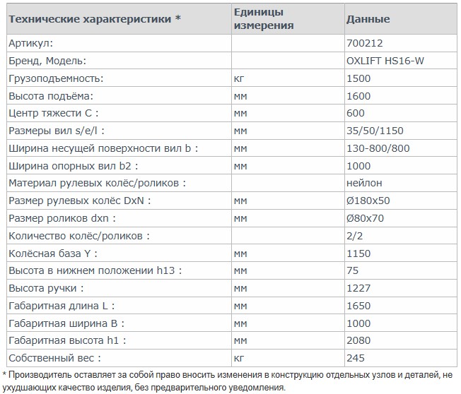 Основная особенность данного штабелера – размеры и положение опорных вил: они вынесены за пределы каретки вил, что позволяет оперировать с грузами, размещенными на паллетах различных типов.