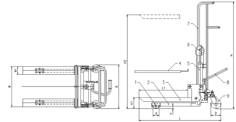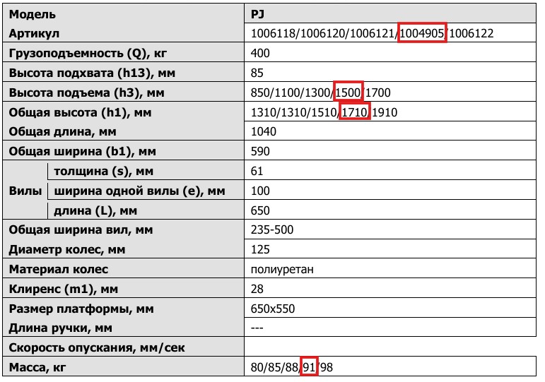 Ручной штабелер TOR PJ4150 — мини-штабелер, который может поднимать грузы весом до 400 кг на высоту до 1,5 метра. Помимо классических вил у штабелера имеется съемная площадка и его можно использовать как подъемную площадку. В силу своей простоты он стоит примерно на 30% дешевле любого ручного штабелера и может быть самым выгодным вариантом при не высокой интенсивности работ и обработке не тяжелых паллетированных и непаллетированных грузов.