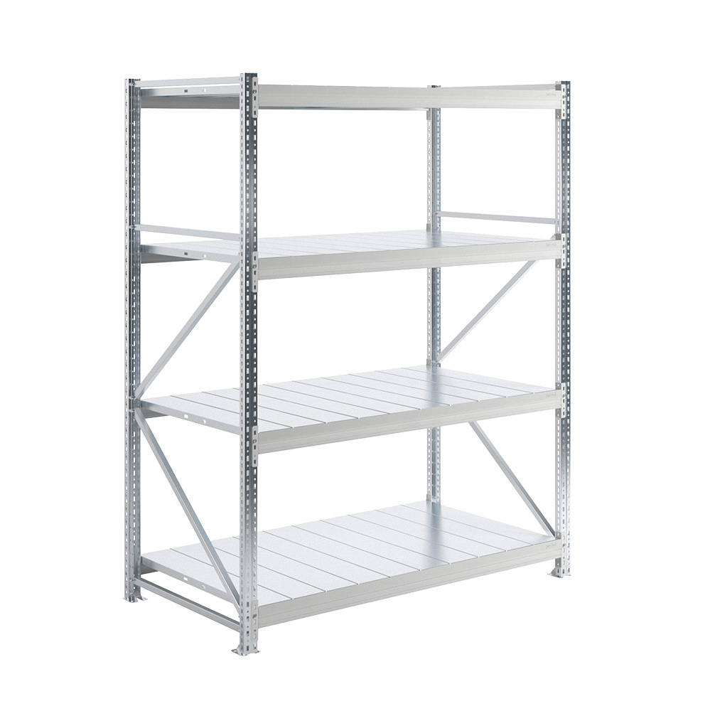 Рама и полки стеллажа изготовлены из оцинкованного металла.