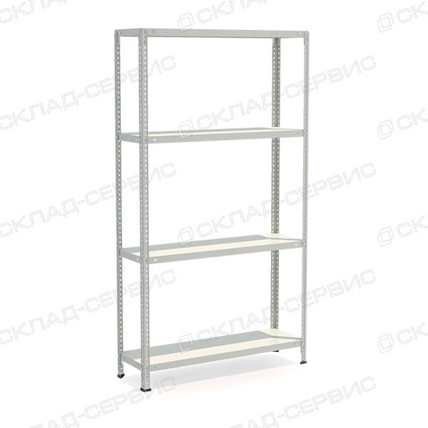 Данная базовая модель полочного стеллажа комплектуется четырьмя стойками высотой 1800 мм и четырьмя усиленными полками 1000*600 мм. В стоимость стоек и полок входят четыре подпятника, крепеж и уголки жесткости.