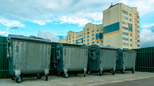 При подсчетах необходимого количества мусорных баков и размеров поверхности площадки предполагается, что на каждого жильца необходимо 0,03 квадратных метра площади. Нужно учитывать, что контейнеры не должны стоять вплотную друг к другу: это может затруднить вывоз отходов. Обычно между ними оставляют пространство не менее 35 см.