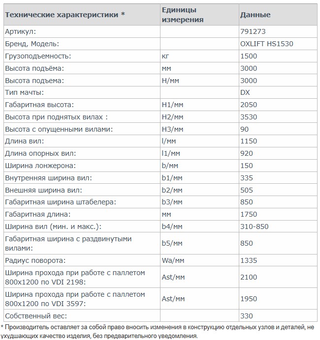 Ручной гидравлический штабелер HS1530 поможет укладывать грузы на высоту до 3 метров, выполнять погрузочно-разгрузочные операции.