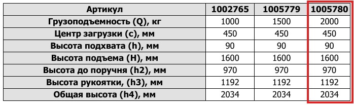 Остаточная грузоподъемность на максимальной высоте, кг