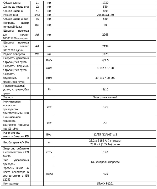 Примечание :Это экономит до 0,5м полезного в стесненных условиях. Наши собственные тесты на складе с расстоянием 1.85м между стеллажами показали возможность эффективной работы данного штабелера в столь узком проходе.